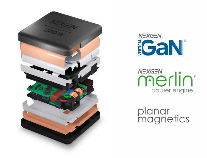 Breakthrough high-voltage 1+ MHz switching frequency – NexGen Vertical GaN® technology. Revolutionary mechanical, magnetics and thermal engineering.