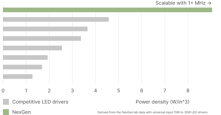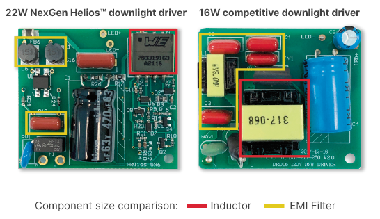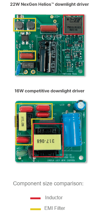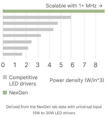 NexGen Helios™ delivers power density that is 2x higher on average than competitive LED drivers.